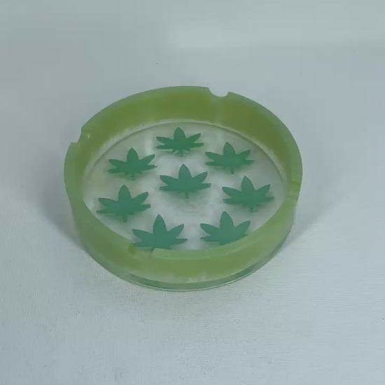 Dieser exklusive Aschenbecher "Marihuana" aus hochwertigem, deutschem Epoxidharz ist ein handgefertigtes Einzelstück, das durch seine einzigartige Farbgebung und glänzende Oberfläche besticht. Jedes Exemplar wird mit großer Sorgfalt und Liebe zum Detail gegossen und verbindet praktische Ordnung mit elegantem Design für Ihr Zuhause.