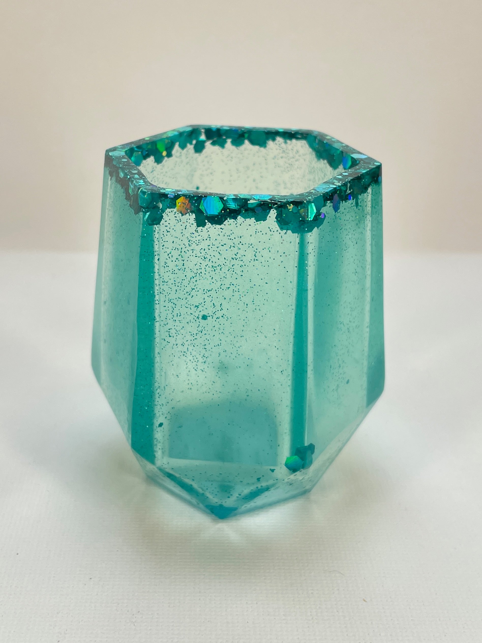 Dieser exklusive Becher aus hochwertigem, deutschem Epoxidharz ist ein handgefertigtes Einzelstück, die durch ihre einzigartige Farbgebung und glänzende Oberfläche besticht. Vielseitig einsetzbar im Bad, Schlafzimmer, Flur oder Büro, bieten sie stilvolle Aufbewahrung für Wattestäbchen, Schmuck, Haargummis und mehr. Jedes Exemplar wird mit großer Sorgfalt und Liebe zum Detail gegossen und verbindet praktische Ordnung mit elegantem Design für Ihr Zuhause.