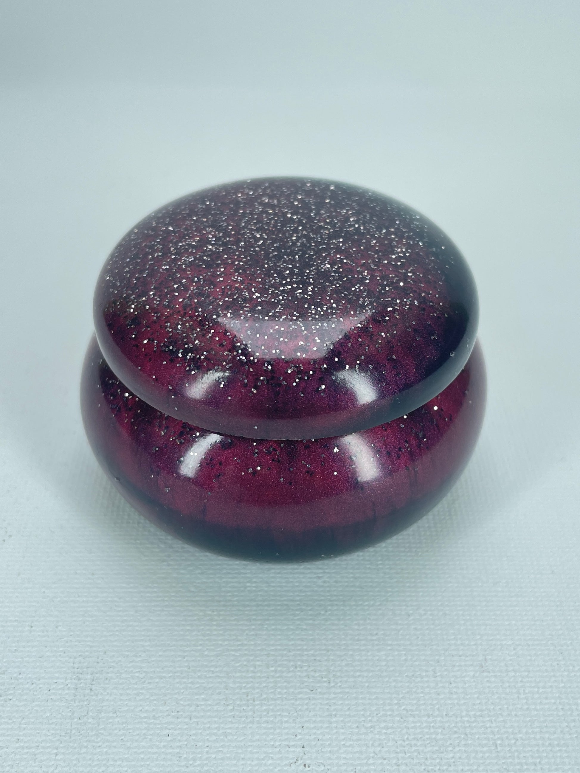 Diese exklusive Schmuckdose aus hochwertigem, deutschem Epoxidharz ist ein handgefertigtes Einzelstück, die durch ihre einzigartige Farbgebung und glänzende Oberfläche besticht. Vielseitig einsetzbar im Bad, Schlafzimmer, Flur oder Büro, bieten sie stilvolle Aufbewahrung für Teelichter, Hygieneartikel, Schmuck, Haargummis und mehr. Jedes Exemplar wird mit großer Sorgfalt und Liebe zum Detail gegossen und verbindet praktische Ordnung mit elegantem Design für Ihr Zuhause.