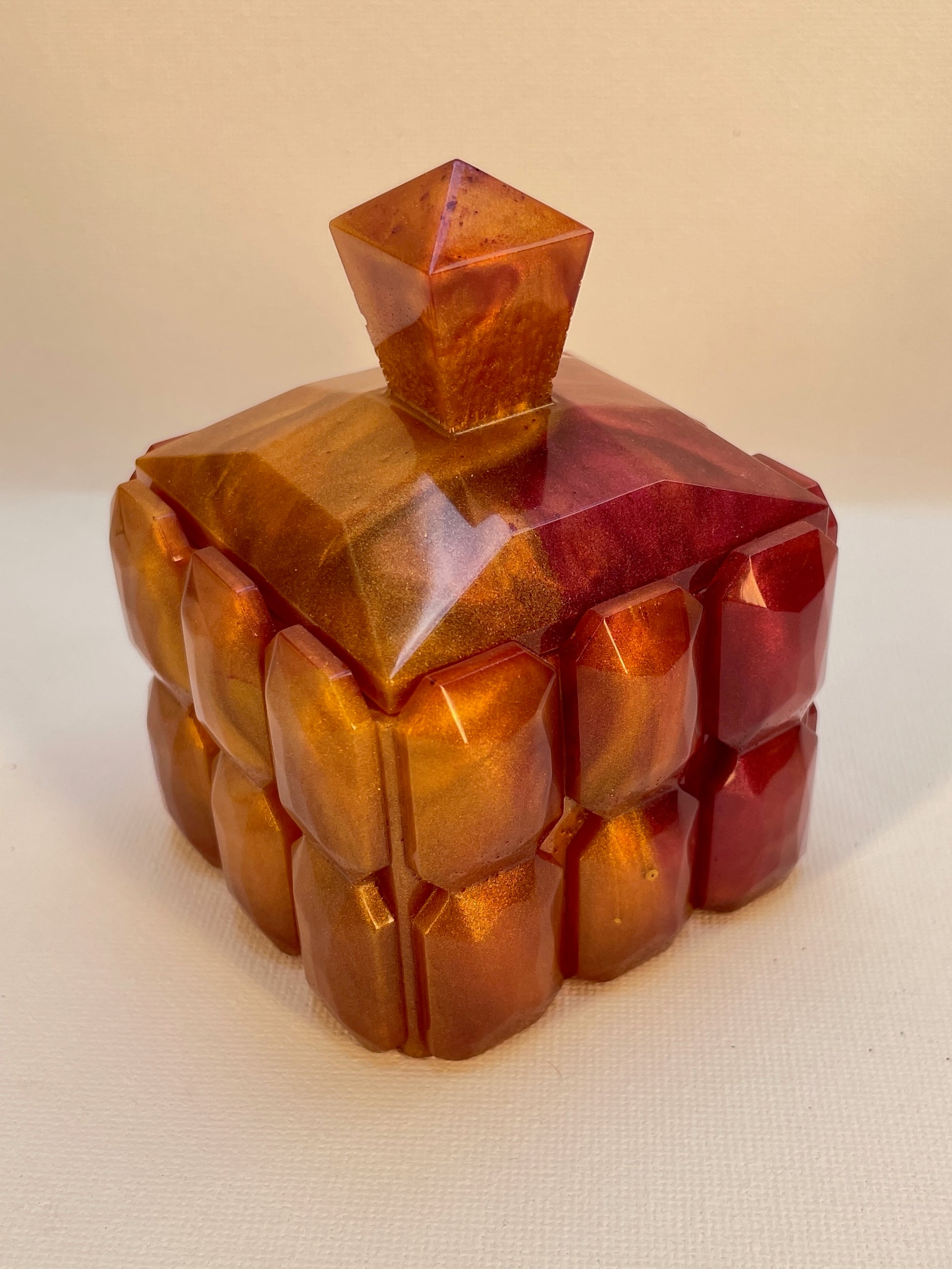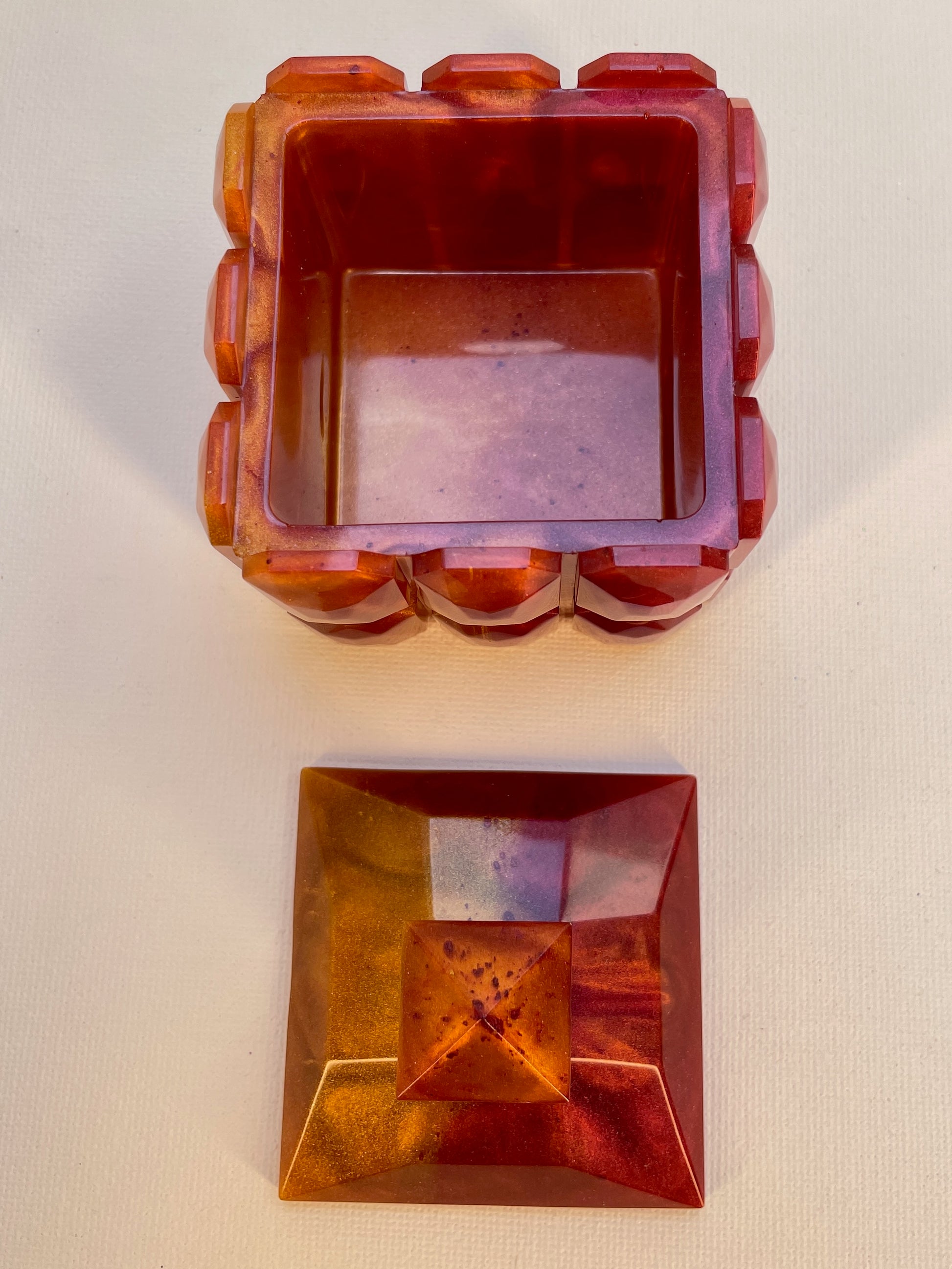 Diese exklusive Schmuckdose aus hochwertigem, deutschem Epoxidharz ist ein handgefertigtes Einzelstück, die durch ihre einzigartige Farbgebung und glänzende Oberfläche besticht. Vielseitig einsetzbar im Bad, Schlafzimmer, Flur oder Büro, bieten sie stilvolle Aufbewahrung für Hygieneartikel, Schmuck, Haargummis, Schlüssel und mehr. Jedes Exemplar wird mit großer Sorgfalt und Liebe zum Detail gegossen und verbindet praktische Ordnung mit elegantem Design für Ihr Zuhause.