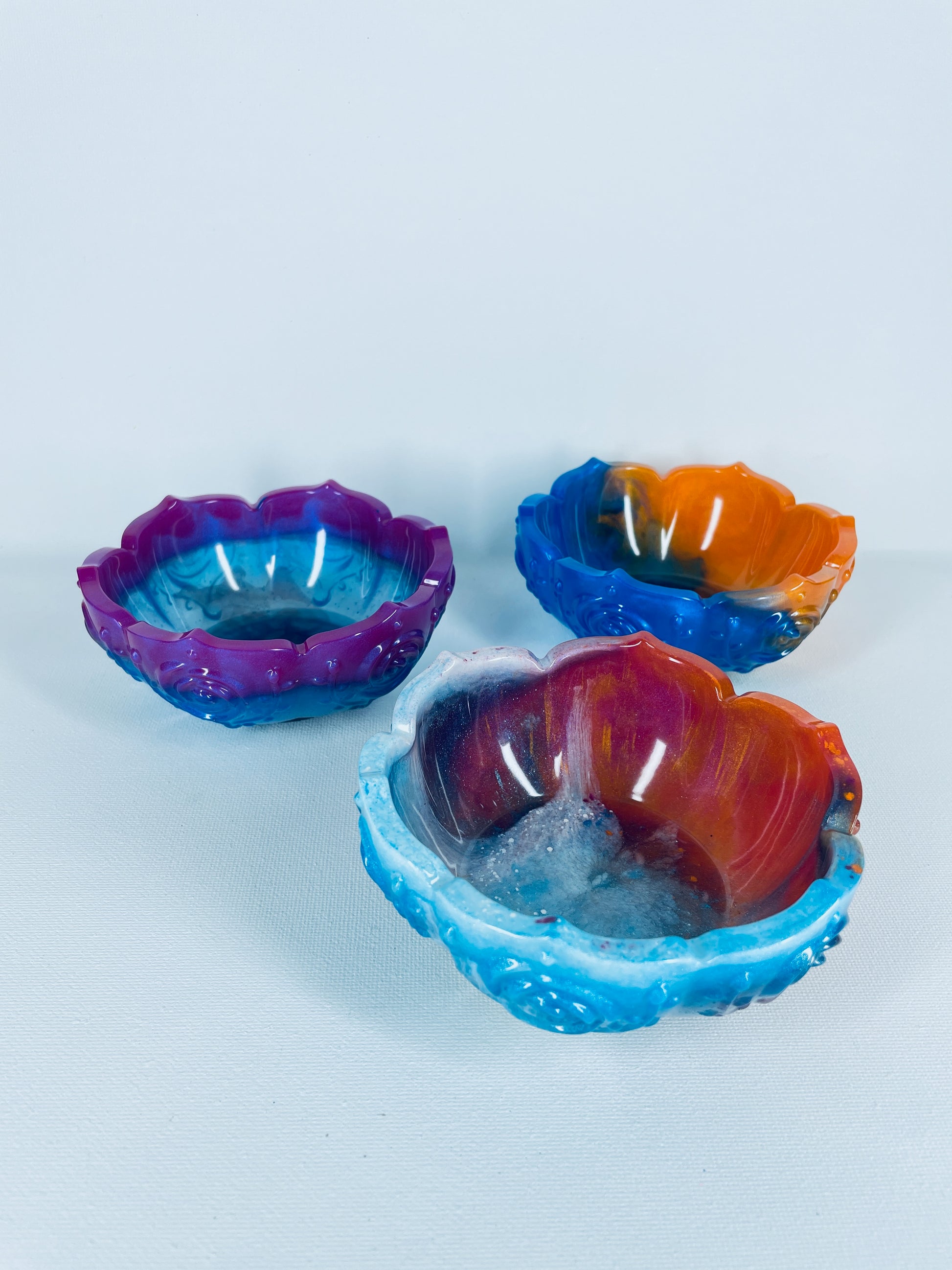 Diese exklusive Rosenschale aus hochwertigem, deutschem Epoxidharz ist ein handgefertigtes Einzelstück, die durch ihre einzigartige Farbgebung und glänzende Oberfläche besticht. Vielseitig einsetzbar im Bad, Schlafzimmer, Flur oder Büro, bieten sie stilvolle Aufbewahrung für Bonbons, Schmuck, Haargummis, Schlüssel und mehr. Jedes Exemplar wird mit großer Sorgfalt und Liebe zum Detail gegossen und verbindet praktische Ordnung mit elegantem Design für Ihr Zuhause.