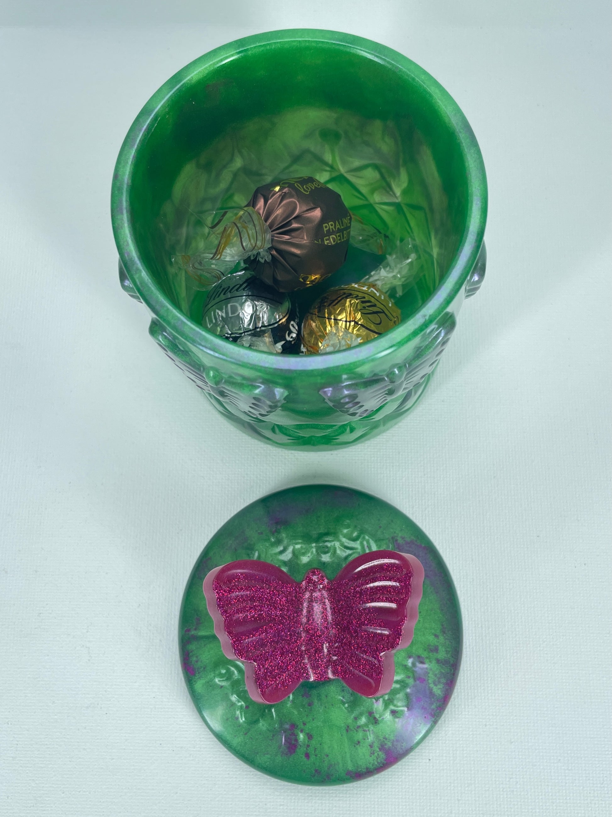 Diese exklusive Schmuckdose aus hochwertigem, deutschem Epoxidharz ist ein handgefertigtes Einzelstück, die durch ihre einzigartige Farbgebung und glänzende Oberfläche besticht. Vielseitig einsetzbar im Bad, Schlafzimmer, Flur oder Büro, bieten sie stilvolle Aufbewahrung für Wattestäbchen, Schmuck, Haargummis, Schlüssel und mehr. Jedes Exemplar wird mit großer Sorgfalt und Liebe zum Detail gegossen und verbindet praktische Ordnung mit elegantem Design für Ihr Zuhause.