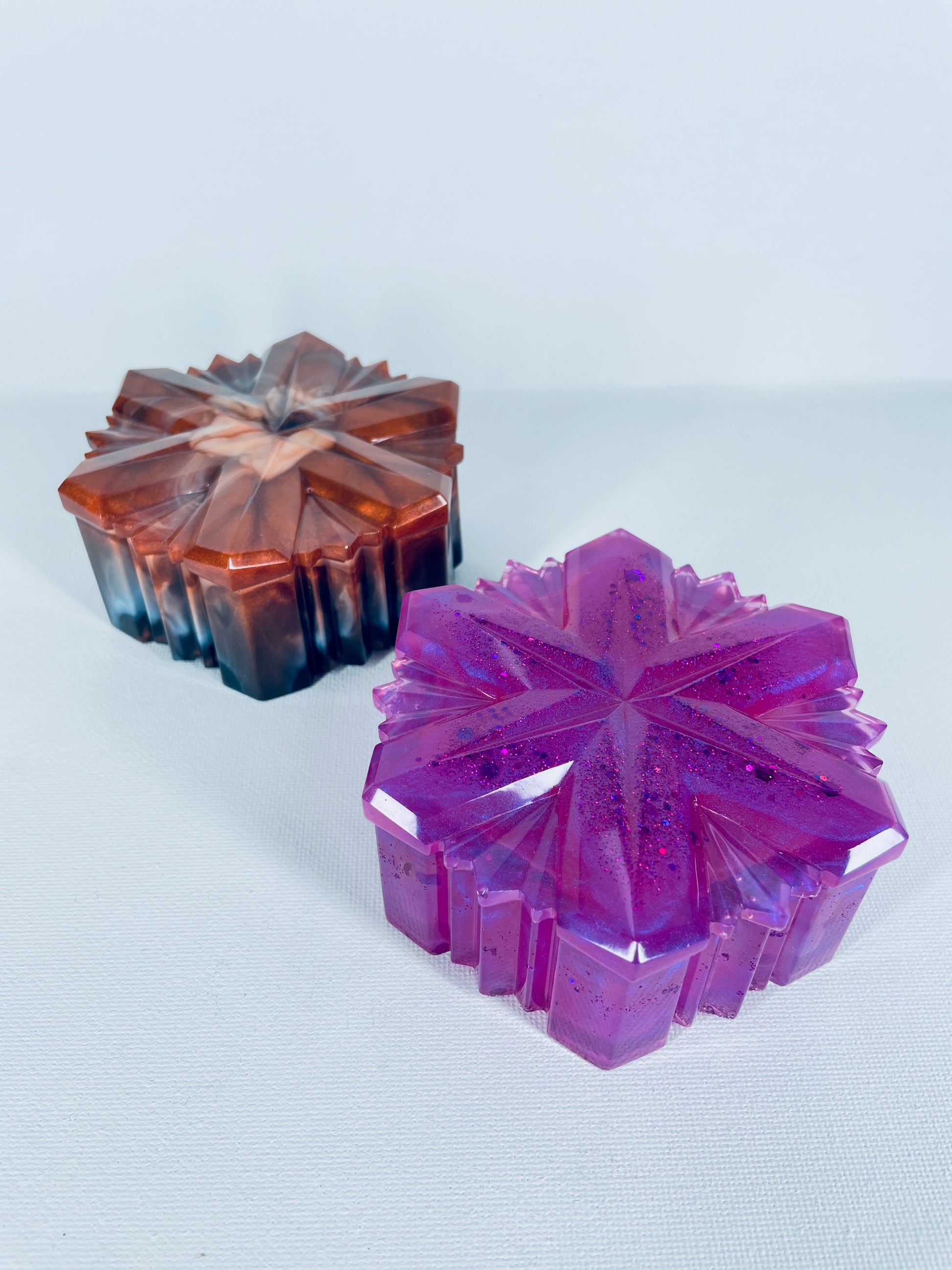 Diese exklusive Schmuckdose aus hochwertigem, deutschem Epoxidharz ist ein handgefertigtes Einzelstück, die durch ihre einzigartige Farbgebung und glänzende Oberfläche besticht. Vielseitig einsetzbar im Bad, Schlafzimmer, Flur oder Büro, bieten sie stilvolle Aufbewahrung für Hygieneartikel, Schmuck, Haargummis, Schlüssel und mehr. Jedes Exemplar wird mit großer Sorgfalt und Liebe zum Detail gegossen und verbindet praktische Ordnung mit elegantem Design für Ihr Zuhause.