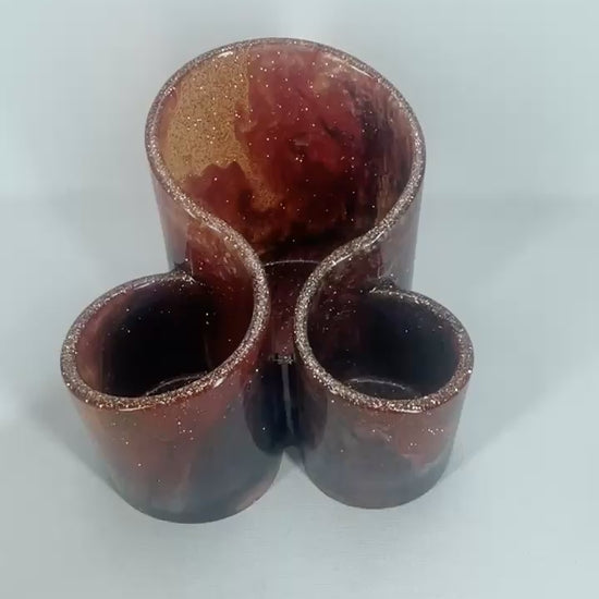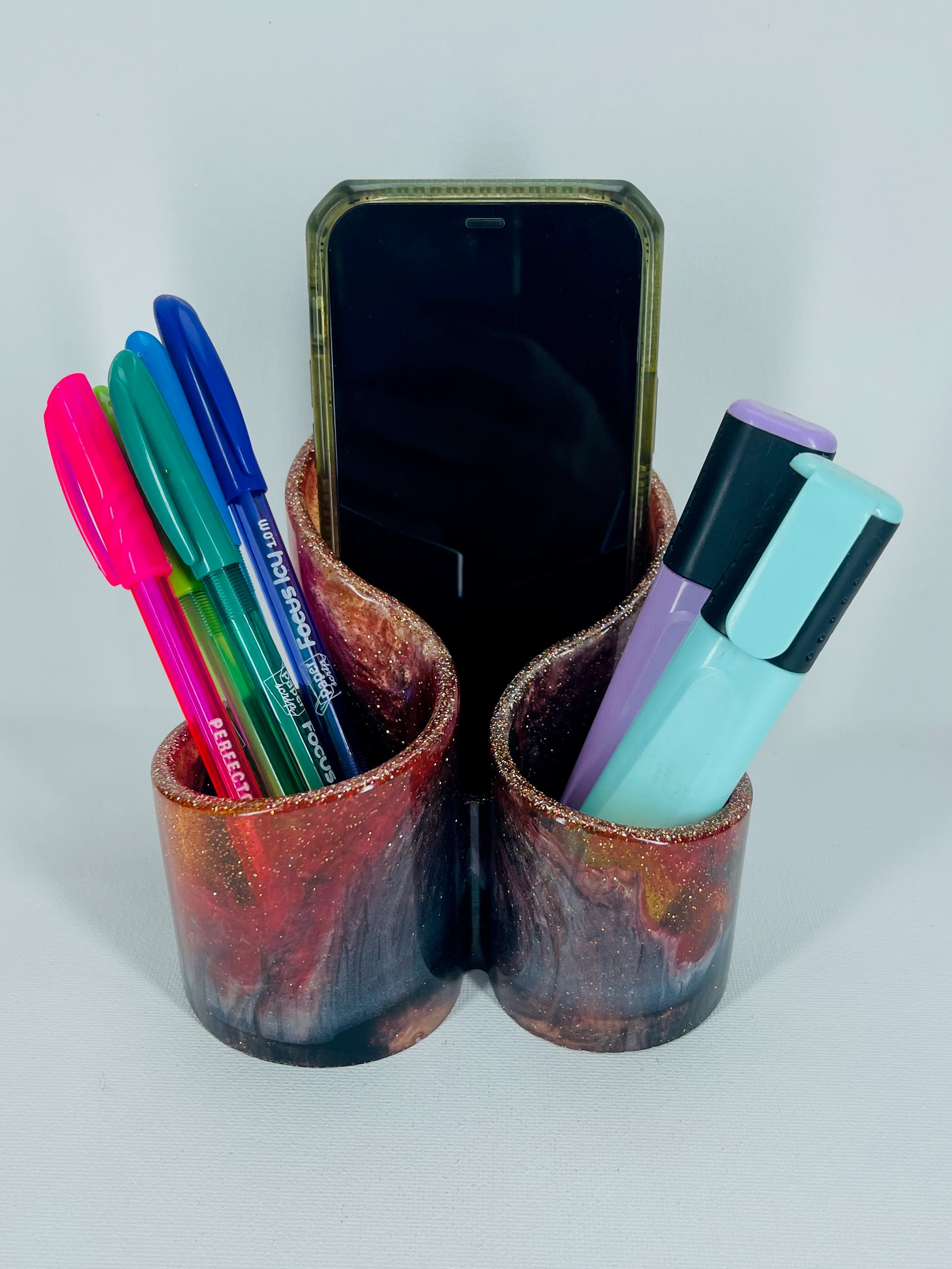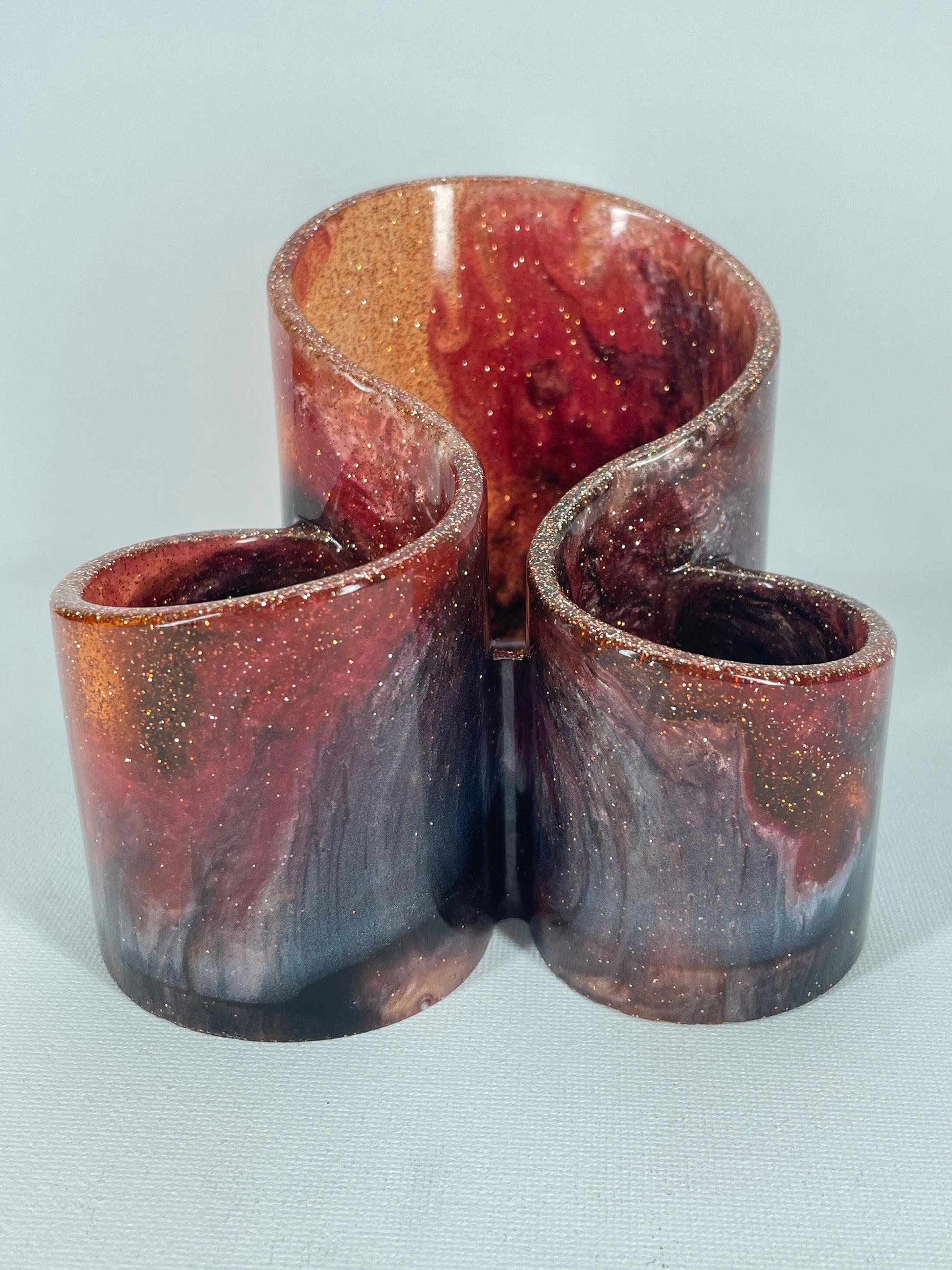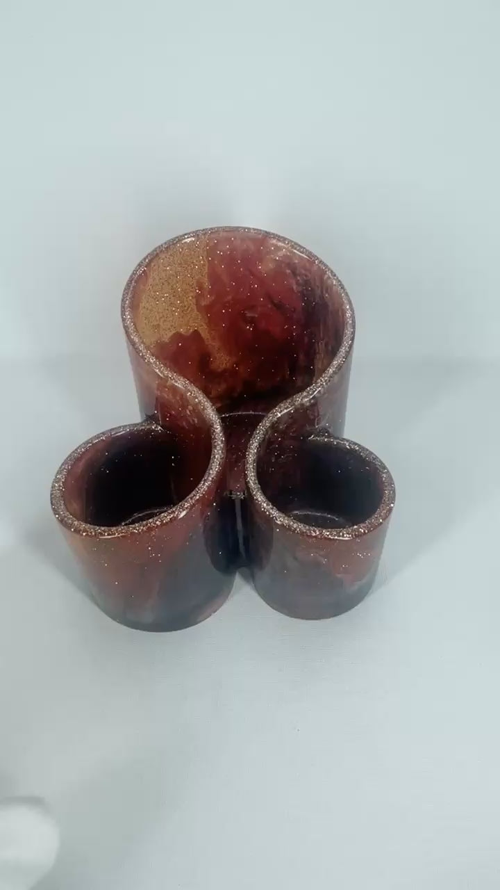 Dieser exklusive Becher aus hochwertigem, deutschem Epoxidharz ist ein handgefertigtes Einzelstück, die durch ihre einzigartige Farbgebung und glänzende Oberfläche besticht. Vielseitig einsetzbar im Bad, Schlafzimmer, Flur oder Büro, bieten sie stilvolle Aufbewahrung für Wattestäbchen, Schmuck, Haargummis und mehr. Jedes Exemplar wird mit großer Sorgfalt und Liebe zum Detail gegossen und verbindet praktische Ordnung mit elegantem Design für Ihr Zuhause.