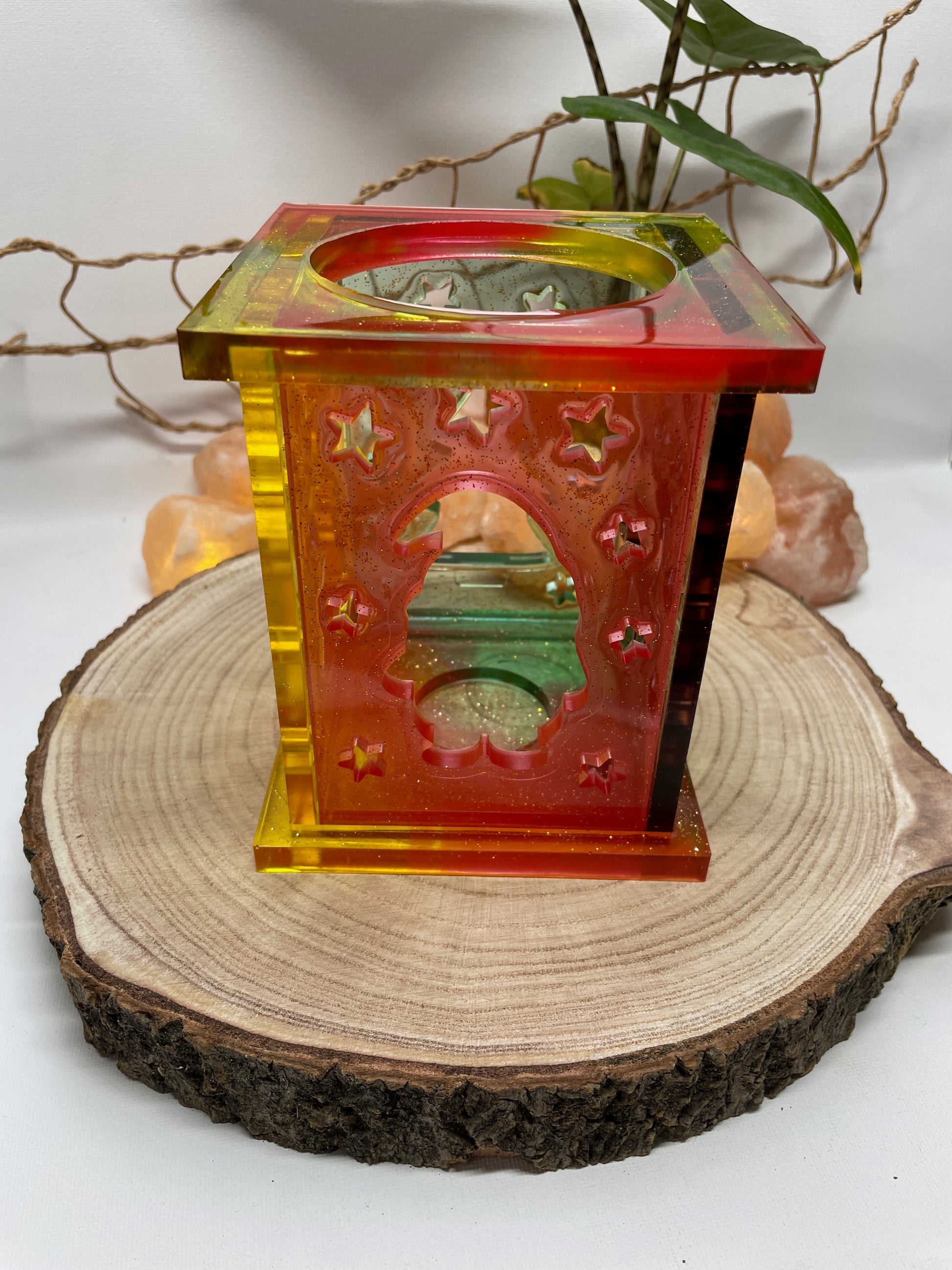 Diese exklusive Weihnachtslaterne aus hochwertigem, deutschem Epoxidharz mit vier verschiedenen Seiten ( Formen und Farben) ist ein handgefertigtes Einzelstück, die durch ihre einzigartige Farbgebung und glänzende Oberfläche besticht. Vielseitig einsetzbar im Wohnzimmer, Bad, Schlafzimmer, Flur oder Büro. Jedes Exemplar wird mit großer Sorgfalt und Liebe zum Detail gegossen. Für Teelichter geeignet.