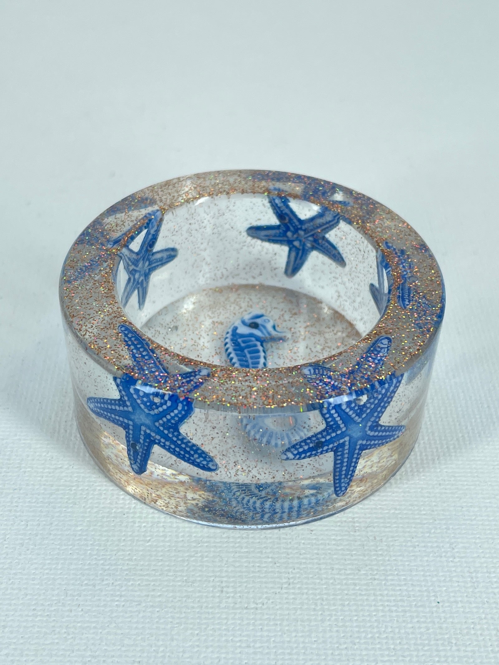 Jedes Stück wird aus deutschen Epoxidharz in liebevoller Handarbeit gefertigt und ist daher ein Unikat. Kleine Luftbläschen, leichte Farbverläufe oder minimale Unregelmäßigkeiten sind kein Mangel und beeinträchtigen die Funktion nicht. Durch den Aushärtungsprozess zieht sich das Harz zusammen, dadurch können Schlieren und Farbverläufe entstehen. Außerdem kann Glitzer beim aushärten wandern.