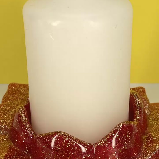 Dieser exklusive Teelichthalter aus hochwertigem, deutschem Epoxidharz ist ein handgefertigtes Einzelstück, die durch ihre einzigartige Farbgebung und glänzende Oberfläche besticht. Jedes Exemplar wird mit großer Sorgfalt und Liebe zum Detail gegossen und verbindet praktische Ordnung mit elegantem Design für Ihr Zuhause.