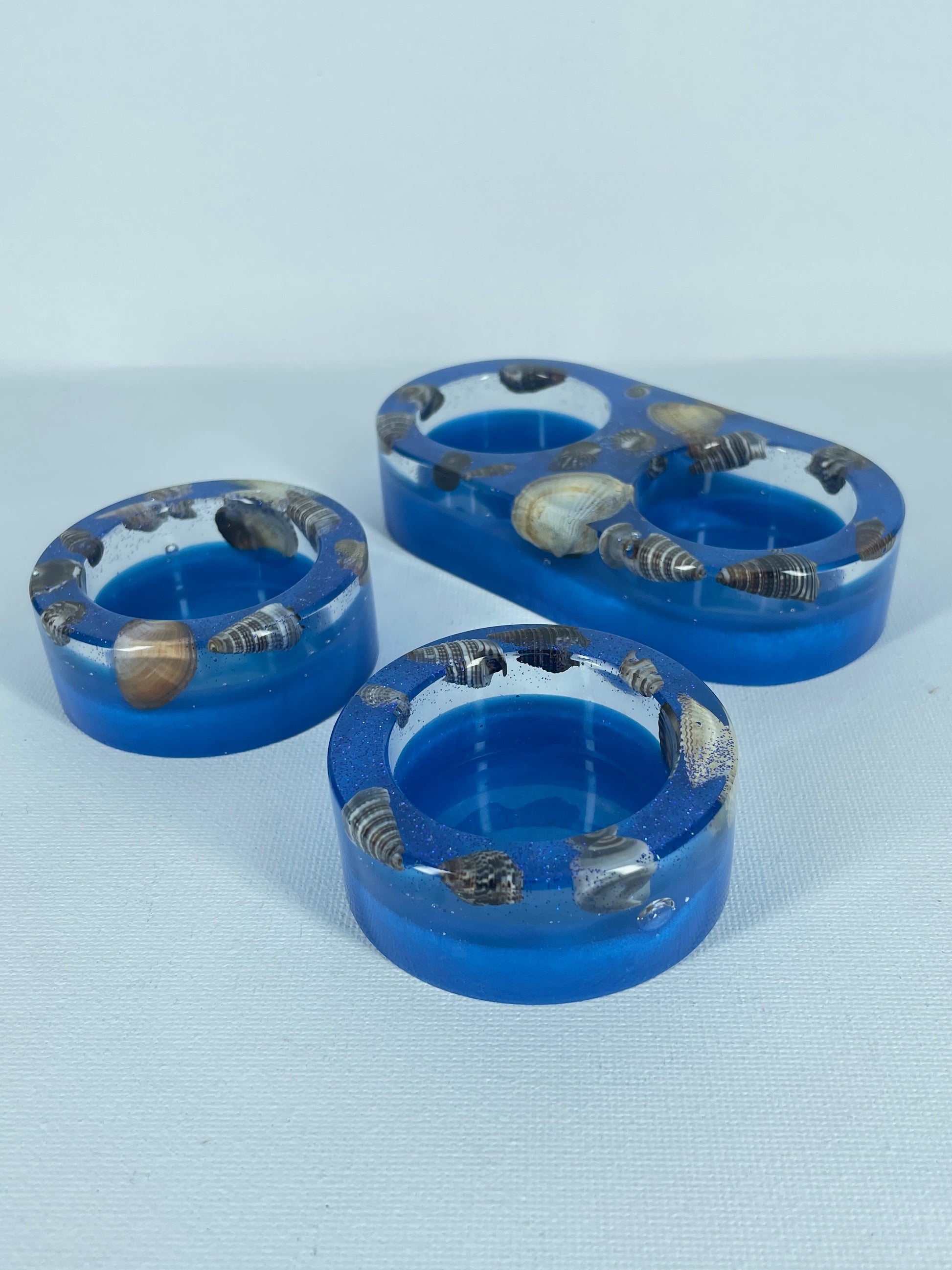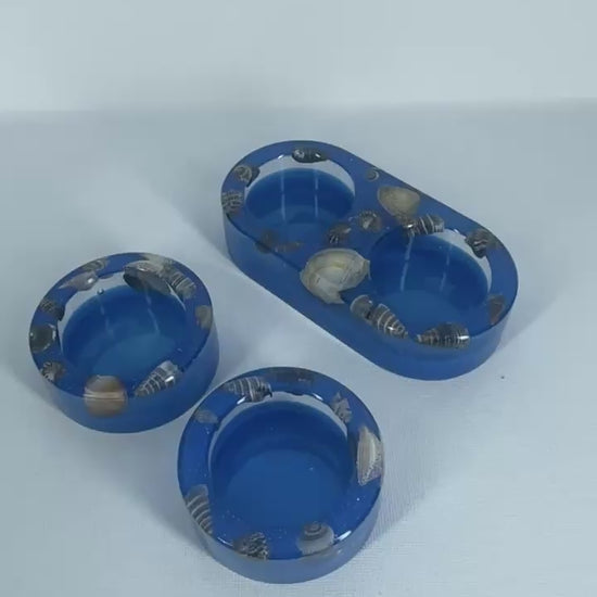 Diese exklusive Set aus hochwertigem, deutschem Epoxidharz ist ein handgefertigtes Einzelstück, die durch ihre einzigartige Farbgebung und glänzende Oberfläche besticht. Jedes Exemplar wird mit großer Sorgfalt und Liebe zum Detail gegossen und verbindet praktische Ordnung mit elegantem Design für Ihr Zuhause.