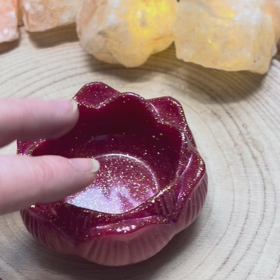 Dieser exklusive Teelichthalter aus hochwertigem, deutschem Epoxidharz ist ein handgefertigtes Einzelstück, die durch ihre einzigartige Farbgebung und glänzende Oberfläche besticht. Jedes Exemplar wird mit großer Sorgfalt und Liebe zum Detail gegossen und verbindet praktische Ordnung mit elegantem Design für Ihr Zuhause.