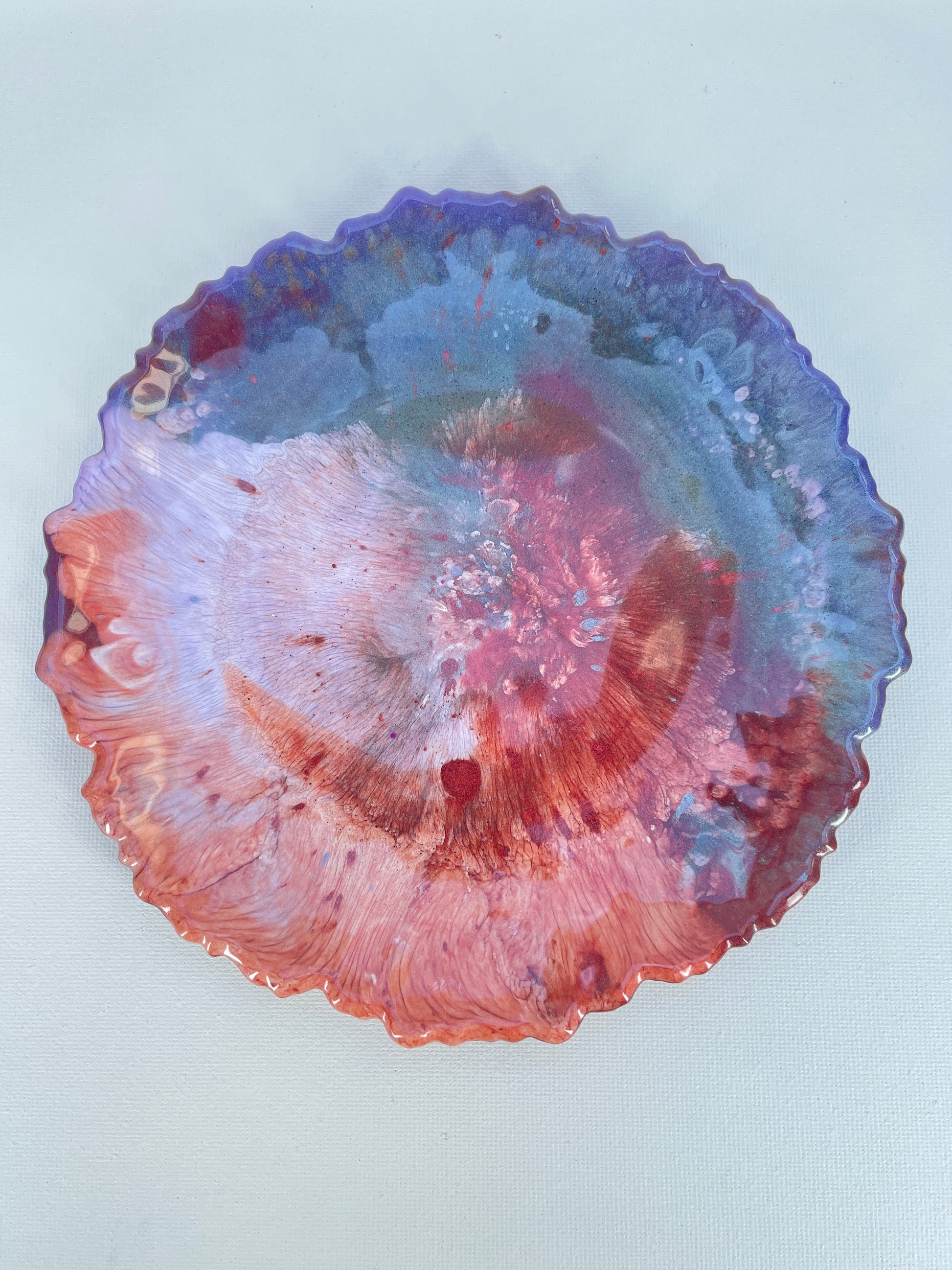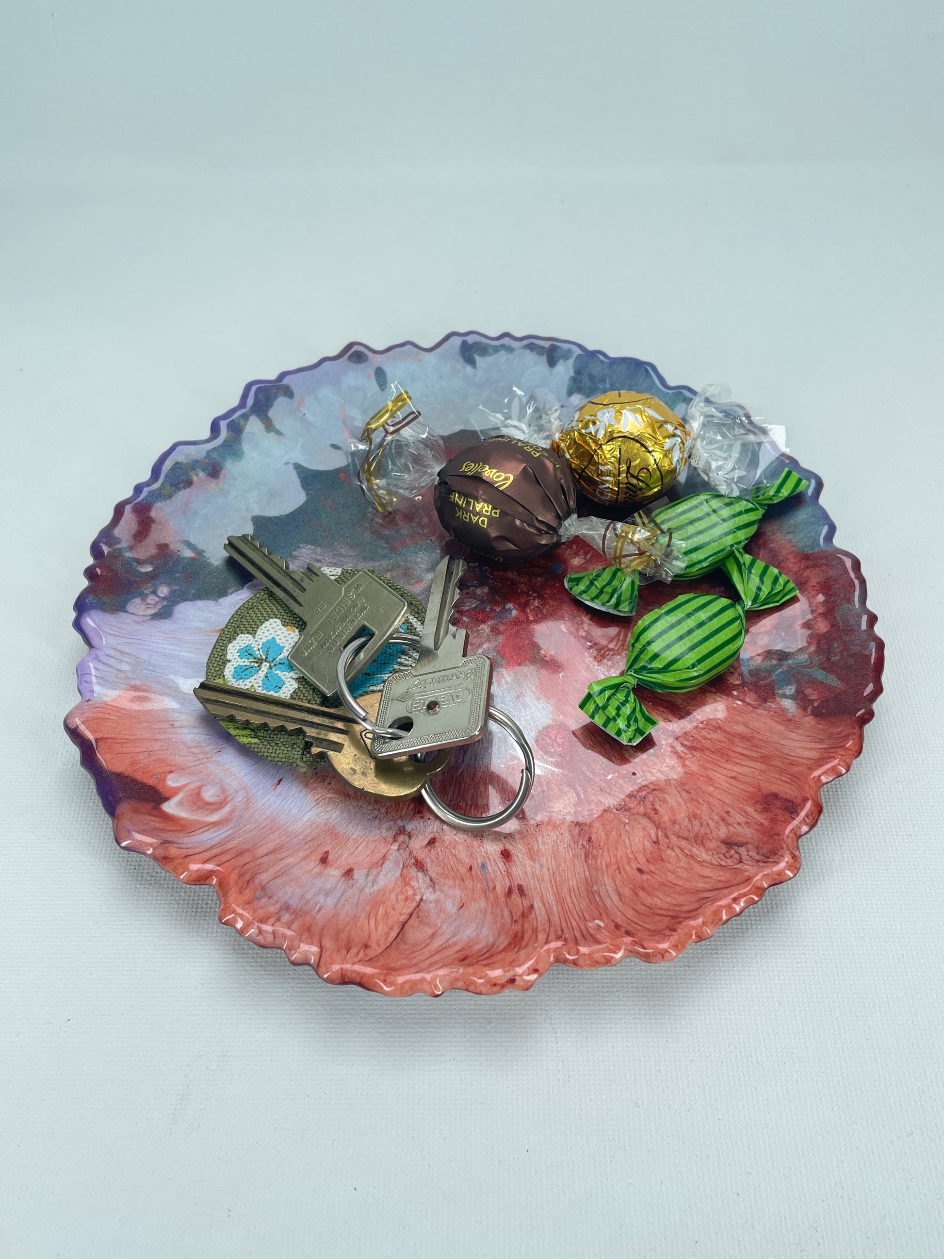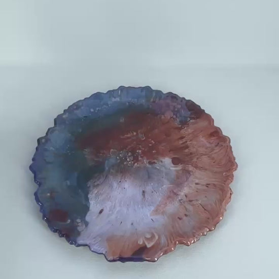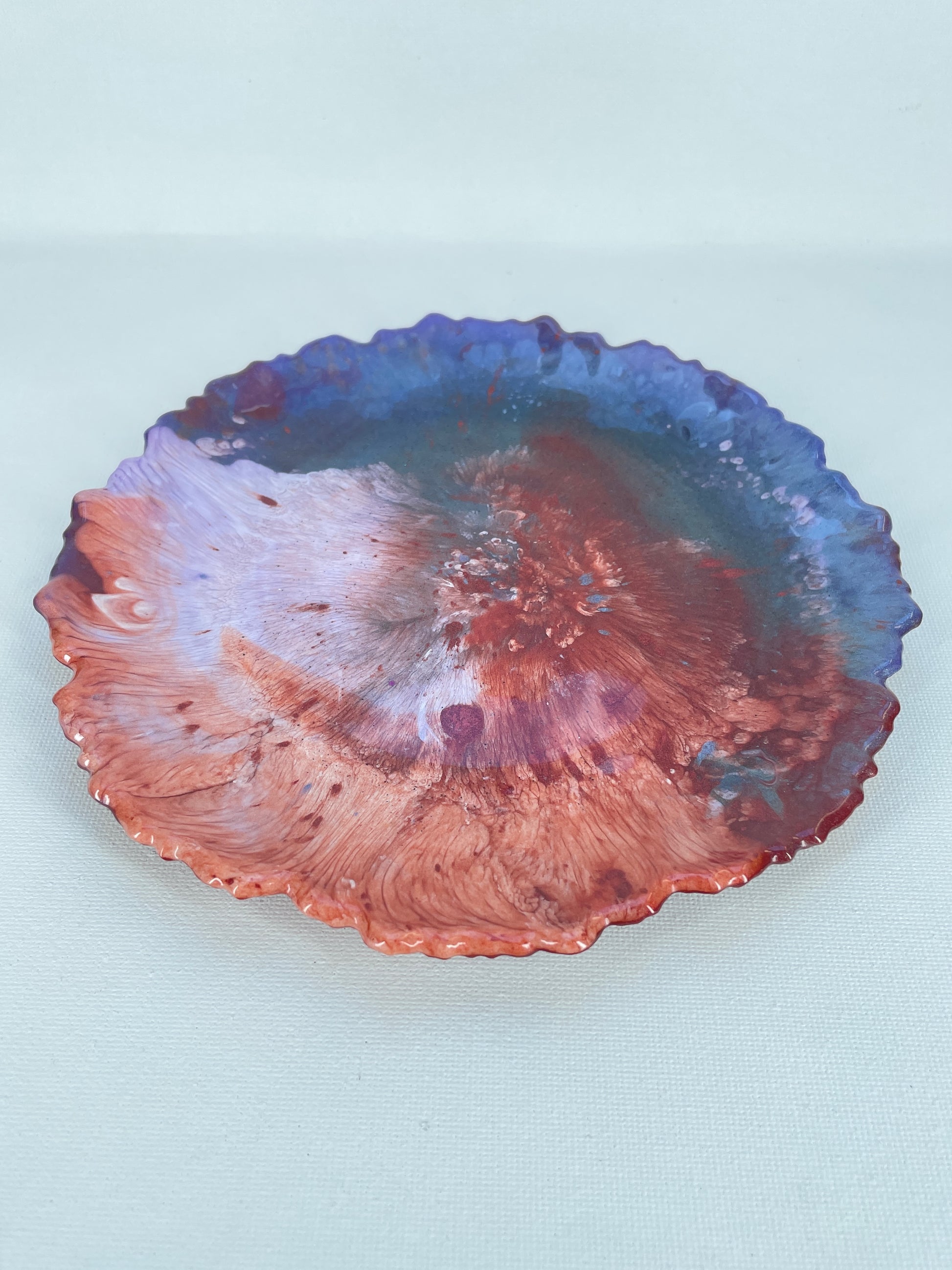 Dieser elegante und luxuriöse Teller aus hochwertigem, deutschem Epoxidharz ist ein handgefertigtes Einzelstück, die durch ihre einzigartige Farbgebung und glänzende Oberfläche besticht. Jedes Exemplar wird mit großer Sorgfalt und Liebe zum Detail gegossen und bietet ein außergewöhnliches Design für Ihr Zuhause.